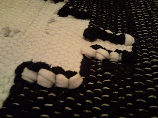 Ezt csináltam, most és sokszor vissza is kelett bontani mert, néha elfelejtettem merről is kell folytatni a csomózást jobbról-balra vagy épp fordítva.Így néha már a hajam téptem de az eredmény.áá és még de jó is lenne ha nem csak ilyen kicsi, hanem 1m hosszú és 50cm széles.